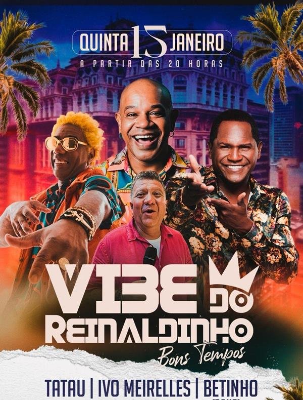 Reinaldinho, que apresenta o projeto “Vibe do Reinaldinho – Bons Tempos”, um show concebido para ir além da música. A proposta nasce do conceito de vibe como energia, alegria, paz e conexão, traduzindo a pluralidade de ritmos, sons e estilos que marcaram gerações e continuam atuais. A ideia é transportar o público no tempo, resgatando lembranças, sensações e emoções por meio da música e de elementos cenográficos que remetem ao passado, reforçando a memória afetiva coletiva.