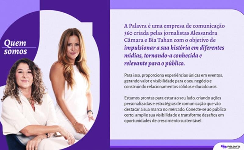 Com sede em Goiânia e atuação em todo o Brasil, a Palavra Comunicação se destaca como uma das principais agências de comunicação estratégica do país. Fundada pelas jornalistas Alessandra Câmara e Bia Tahan, a empresa acumula mais de uma década de experiência na construção de marcas com propósito, visibilidade e credibilidade.