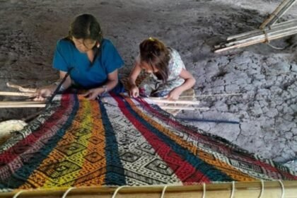 (Na Escola Viva Huni Kuï, os jovens aprendem a tecelagem em meio…
